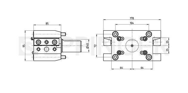Tool holder, straight, multiple rectangular transverse, Coolant external